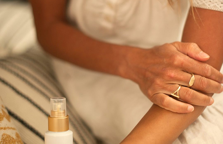 Tragen Sie einen leichten Sprühnebel aus biologisch parfümiertem Sommerwasser auf Ihren Körper auf, für eine zart duftende Haut den ganzen Tag lang